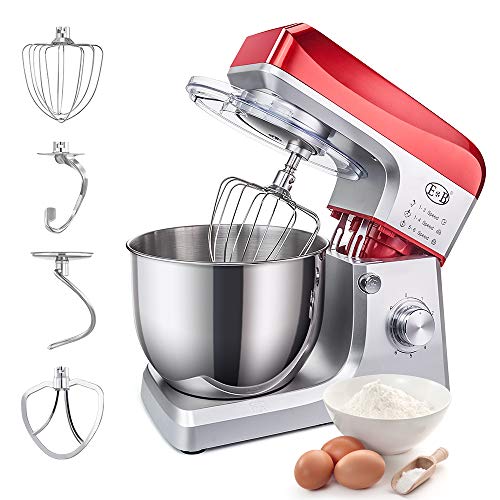 - 🍰【4 Kind of Hooks, More Professional Stand Mixer】This stand mixer is equipped with 4 mixing accessories: Stainless steel dough hook, alloy dough hook, beater and whisk, and a transparent splash guard that helps to add ingredients in time. Compare to other electric standing mixers that only have the alloy hook, this stand mixer is more professional, whether you want to make cakes, pastries, or almost any other baked goods you want, It can help you and can meet many needs in your production.